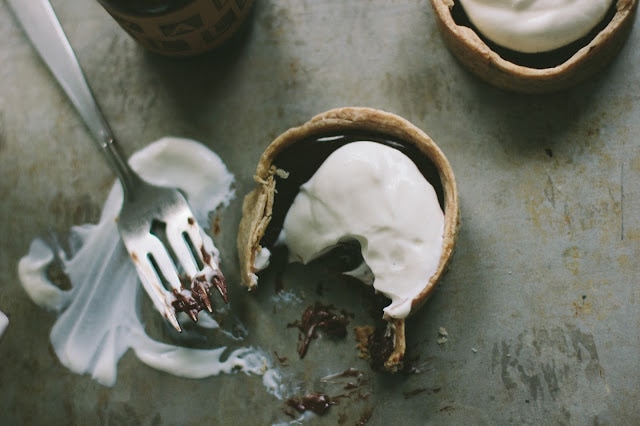 Bittersweet Chocolate Tartlets with Flaky Spelt Crust + Crème Fraîche