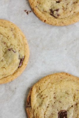 - I prefer to sprinkle the flaky salt on the tops of the cookies before baking vs after – I think that it helps bring out more flavor without tasting overwhelmingly salty.