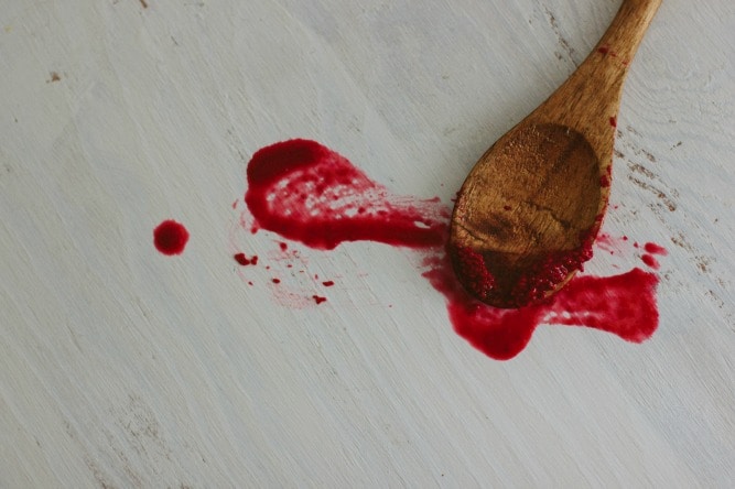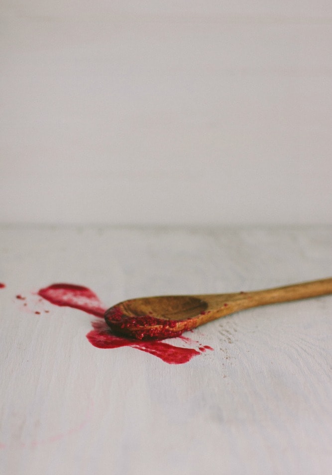 In a food processor or blender, puree berries until very smooth. Put the puree through a fine mesh strainer to remove the seeds. You’ll have about 1/3-1/2 cup berry puree. Set aside.