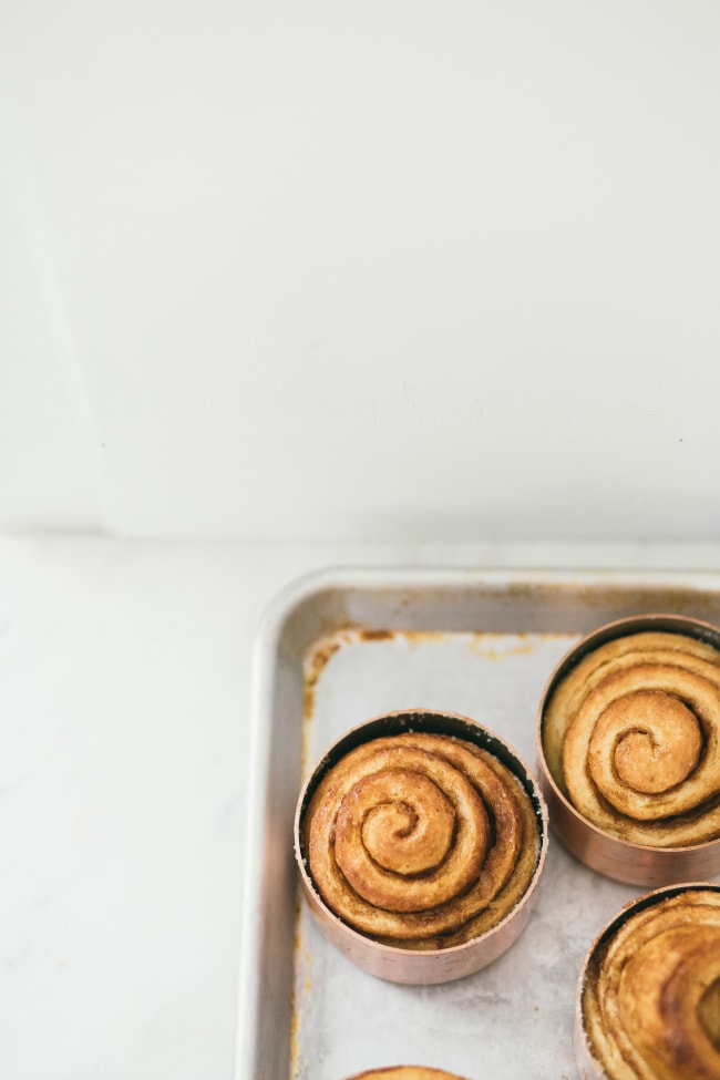 I’ve had a lot of people asking about these cinnamon buns on Instagram, and so I’m finally delivering with a recipe. This cinnamon buns recipe is adapted from my book (affiliate link) but made a bit different: I’ve baked them in mini soufflé pans from Mauviel. I am really happy with how they turned out – the pans held the dough’s shape nicely, and pushed the buns up to be extra tall. The soufflé pans also help caramelize the sides of the buns while keeping the center tender, and this, in my humble opinion, makes them absolutely perfect. I have a few other recipes coming that involve these pans, and will try to get them up this next week.
