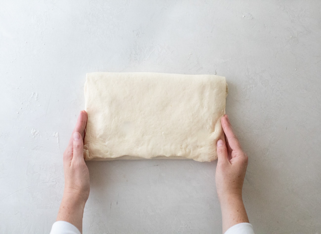 Make sure your kitchen isn’t too hot! This will affect how your dough rolls out. The yeast will began to release gas as the dough warms up, so a cool environment is important. If at any point your butter begins to melt or your dough begins to warm and stick to your work space, you can move the dough to the refrigerator to chill.