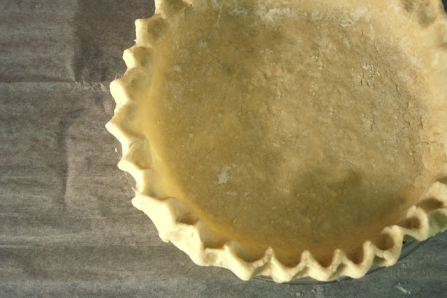 Let dough soften slightly at room temperature, about 10 minutes. Roll the dough into a 12 inch circle on lightly floured counter. Transfer dough to a 9 inch pie plate. Cut off any overhand over 1/2 inch and crimp edges. Cover loosely with plastic wrap. Refrigerate for at least 20 minutes and up to one day.