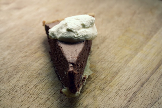 I’m pretty sure this pie doesn’t need me to make a case for it. Unless, of course, you are wondering if it could possibly be better than the one sold in ever-so-famous pie shops. I will reassure you: it is. The crust is thin and golden and crisp, a perfect little bed for the rich dreamy chocolate filling. It is world stopping good – worth every second spent over the stove, beating and beating the filling into being. It is a sincere smile from my long holiday weekend; a moment of sweet silence in the beautiful chaos.