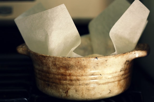 Monday, August 22, 2011 at 4:32 pmi love the pic of the bread pan (or dutch oven, or whatever it is) with the parchment paper sticking out. you could sell that. seriously.