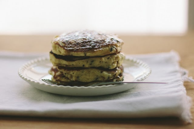 I have two recipes for pancakes that this will work with, these buttermilk pancakes [just omit the strawberries] and these whole wheat pancakes [just omit the pear]. And, I’m fairly confident your own favorite recipe will work great, too. Just add 2 tablespoons cacao nibs to the dry ingredients in either recipe.