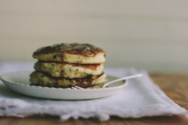 pancakes with cacao nibs + coffee syrup