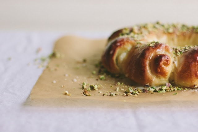 Pistachio Danish Ring with Almond Goat Cheese Filling
