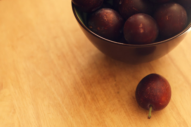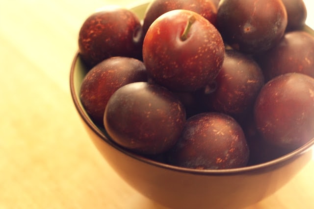 I couldn’t resist these little plums. They jumped out at me as I walked through the store, and my daughter squealed with delight as something so tiny and so purple was put into our cart.