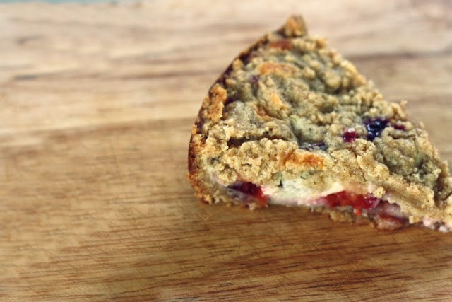 This tart is really incredible. The crumb topping is sweet and a teensy bit salty, and the not-so-sweetness of the plums balance everything nicely. And the cream cheese filling. Yes. That will make everything alright. Just for a moment.