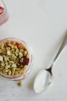raspberry-rhubarb yogurt jars