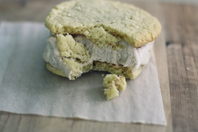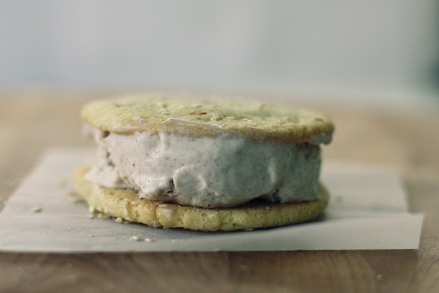 If you are worried about the crystallized ginger getting too firm in the freezer, you can always stick them in the ice cream after it’s softened a bit and ready to be made into sandwiches.