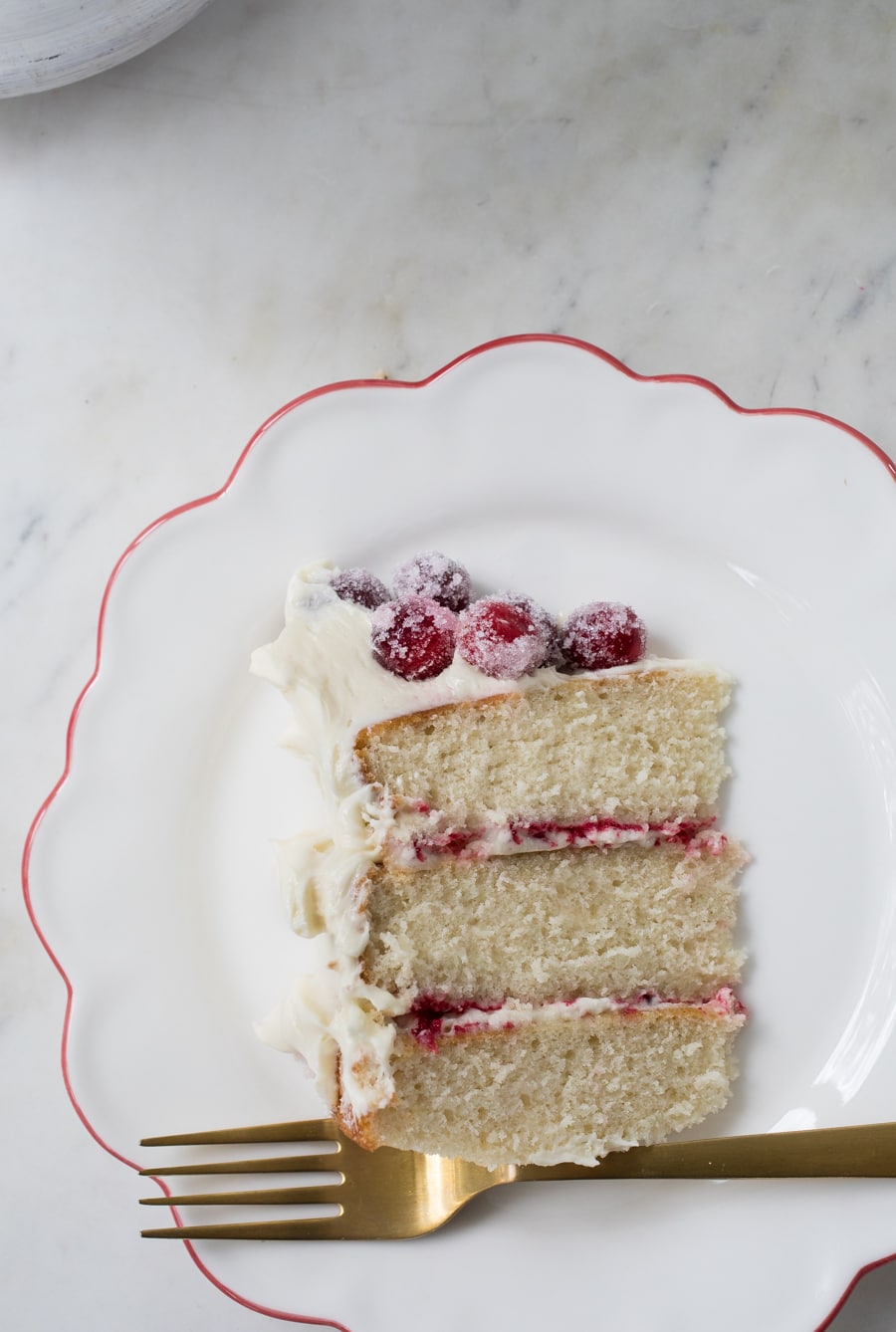 This is my favorite white cake (and also the base in this Streusel Coffee Cake) and while I enjoy eating it perfectly plain, adding cranberry jam, white chocolate buttercream, and sugared cranberries is not a bad idea either. You’ll find this recipe in my new cookbook, Baking for the Holidays, and here!