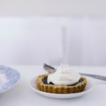 bittersweet chocolate shortbread tarts with brown sugar whipped cream